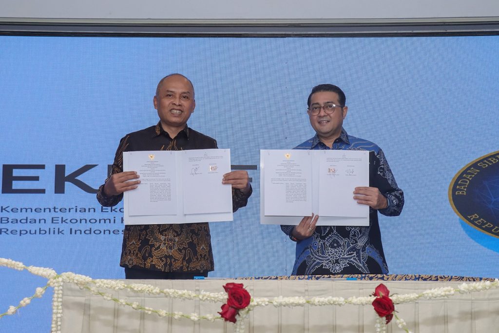 Jakarta, Ekspresi Indonesia—Kepala Badan Siber dan Sandi Negara (BSSN), Letjen TNI (Purn.) Drs. Nugroho Sulistyo Budi, M.M., M.Han. dan Menteri Ekonomi Kreatif , H. Teuku Riefky Harsya, B.Sc., M.T. melakukan penandatanganan nota kesepahaman atau memorandum of understanding (MoU) tentang keamanan transaksi elektronik bagi ekosistem ekonomi kreatif. Penandatanganan tersebut berlangsung di Hotel Borobudur, Jakarta, pada Minggu (23/3/2025).