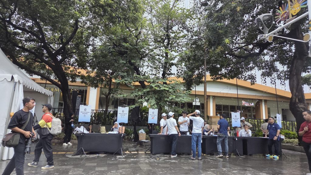 Foto—loket pendaftaran program mudik gratis oleh BUMN dan Perum BULOG masih siaga menunggu masyarakat yang ingin mendaftarkan diri. (Sumber: Damar/Ekspresi Indonesia)