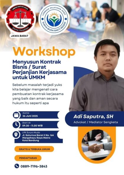 By D.L.R • June 28, 2025 • Edukasi Ekonomi Kreatif LBH Gema Keadilan Gelar Pelatihan Kontrak Bisnis Foto—Sebanyak 25 pelaku usaha mikro, kecil, dan menengah (UMKM) di Kota Bandung mengikuti pelatihan penyusunan...