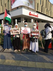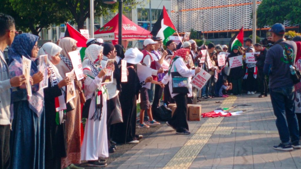 Foto—Beberapa penunjuk rasa pada aksi solidaritas Bulan Sabit Merah (BSM) terhadap rakyat palestina. (Sumber: istimewa)
