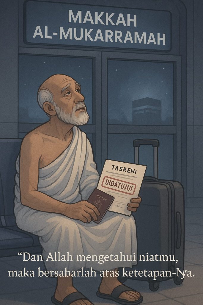 Ada kisah pilu yang menyelinap di antara harapan jutaan umat yang memimpikan hadir di tanah suci. Tentang para jamaah haji yang telah berusaha sekuat tenaga, menabung bertahun-tahun, berangkat dengan hati penuh rindu, namun tak kuasa menembus ketatnya penjagaan. Mereka yang gagal mendapatkan tasrih, izin resmi masuk ke Makkah, akhirnya terlunta-lunta, bahkan ada yang menyelinap lewat jalur sunyi padang pasir. Sebagian harus menerima kenyataan pahit: sakit, kelelahan, bahkan wafat sebelum sempat menginjakkan kaki di Baitullah.