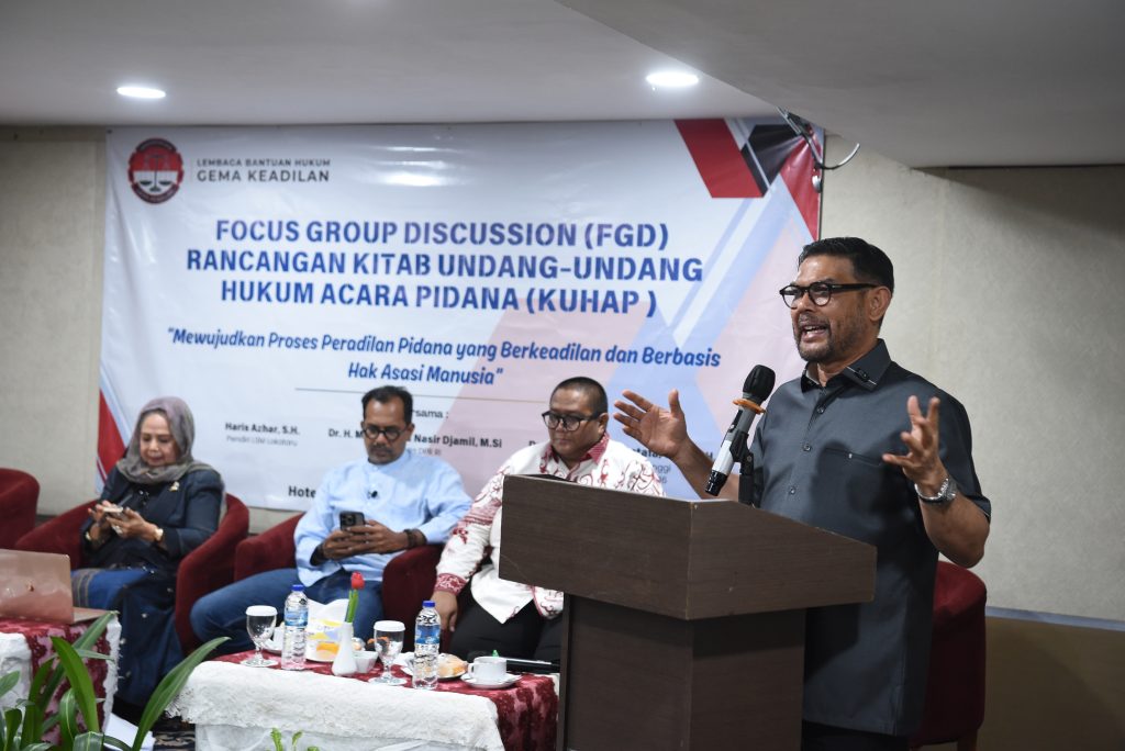 Jakarta, Ekspresi Indonesia—Sebuah diskusi publik bertajuk Focus Group Discussion (FGD) Rancangan Undang-Undang Kitab Undang-Undang Hukum Acara Pidana (RUU KUHAP) digelar pada Rabu, 9 Juli 2025 di Hotel Sofyan Cut Mutia, Cikini, Menteng, Jakarta Pusat. Kegiatan ini berlangsung sejak pukul 09.00 hingga 12.00 WIB dan diselenggarakan oleh Lembaga Bantuan Hukum (LBH) Gema Keadilan, dengan tema utama “Mewujudkan Proses Peradilan Pidana yang Berkeadilan dan Berbasis Hak Asasi Manusia”.